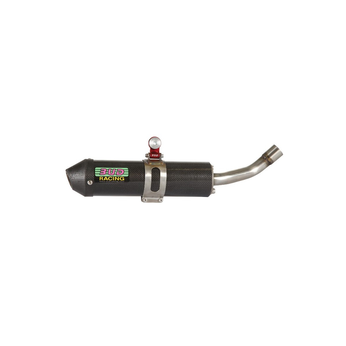 Les silencieux Bud racing carbone sont ultra légers. les parties en métal sont 100% inox anti corrosion. Nos nouveaux modeles sont sans rivets pour une plus grande longévité et un remplacement facilité de la laine de roche. Livrés avec collier inox complet.