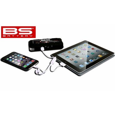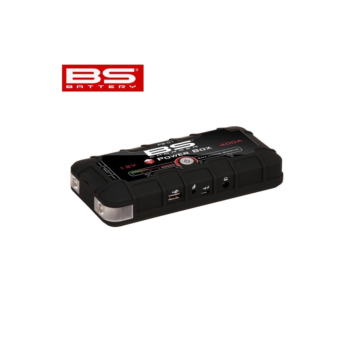 Booster de batterie BS BATTERY Power Box ultra-compact - 12V 12000mA-BOOSTER NOMADE, TRES COMPACT, PEUT ETRE TRANSPORTE FACILEMENT.Le nouveau Power Box PB-01 facilite la vie de tous. C'est une puissante et compacte source d'énergie qui se glisse dans votre coffre de moto, votre boîte à gants ou encore dans votre sac de voyage ou de sport. Peu importe où vous vous situez, vous êtes toujours assuré de pouvoir démarrer votre véhicule ou recharger vos appareils mobiles. La fonction lampe propose 3 modes d'éclairage différents : allumé, stroboscope et SOS. Ses caractéristiques font du Power Box une parfaire source d'alimentation de secours en toutes circonstances. Principales caractéristiques : Batterie Lithium-Ion 12000 mAh Câble de démarrage intelligent, sans danger Câbles multi-prises pour appareils mobiles Peux démarrer jusqu’à 20 fois un moteur avant d’être rechargé Lampe LED avec 3 modes Source d’alimentation par USB Rechargeable par allume-cigare ou prise murale Recharge complète : 5 heures Booster : Moteur essence jusqu'à 5000cc - 5.0L Moteur diesel jusqu'à 2500cc - 2.5L Chargeur : Sortie USB 5V 2.1A pour appareils mobiles Sortie 12V 10A pour produits automobiles Dimensions : Longueur : 170mm Largeur : 82mm Hauteur : 32mm Poids : 408g